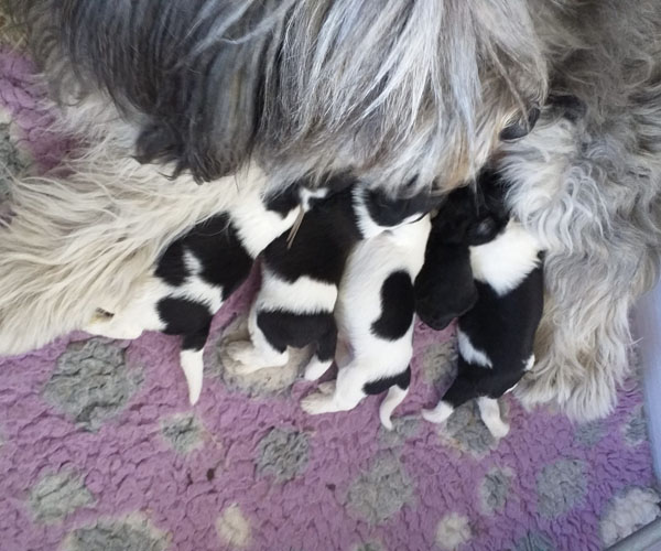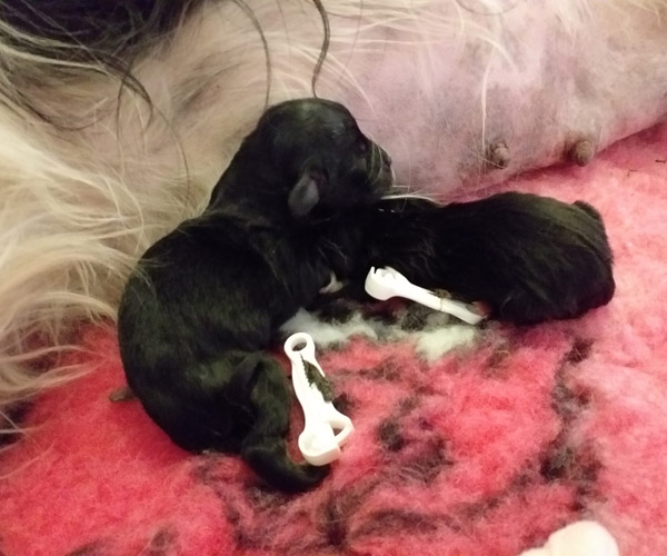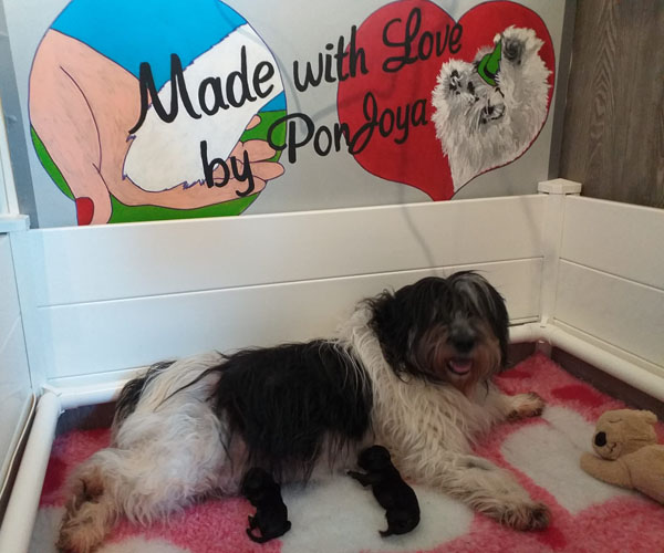 Sassa (Ambergini's Flowerchild) en Aslan (Aslan Medoveho Haje) plus Tobias (Obelix Pon van Joya) hebben op 30 april 2 puppen gekregen