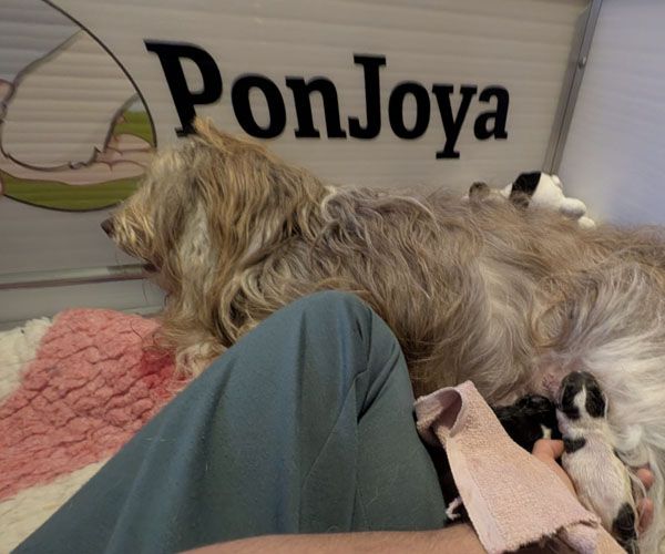 Wie de vader is of vaders zijn, wordt later via DNA bepaald door de Raad van Beheer. Het blijft dus nog even spannend of Grizzly Pon van Joya, Tobias (Asterix Pon van Joya), of wellicht beide heren de trotse papa’s zijn.