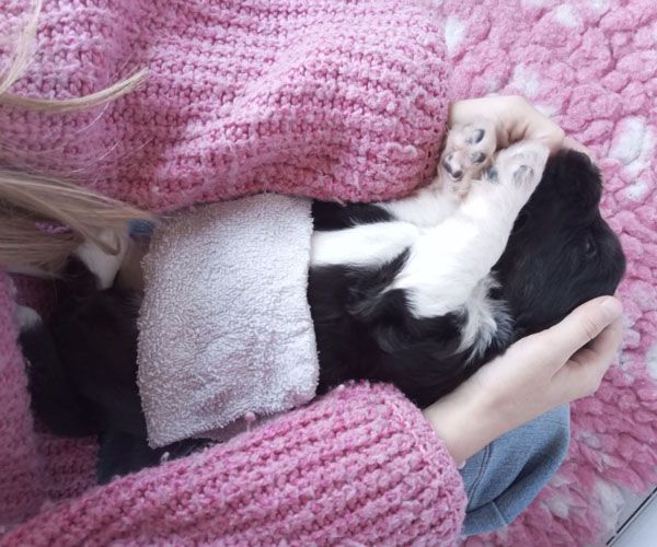 - Op de rug. De pup wordt op zijn rug in de palmen van de handen gelegd. De pup mag verder slapen of zich verzetten.