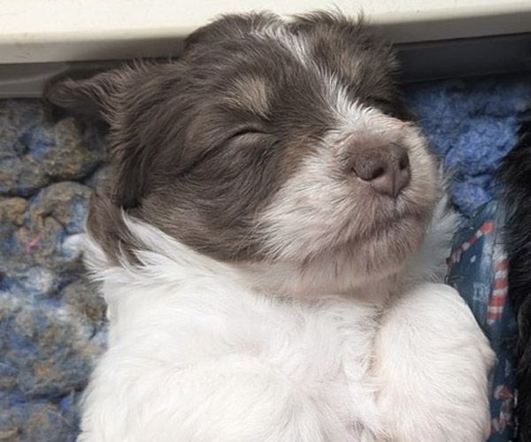Woensdagavond braken haar vliezen om 20.00 uur en al vrij snel, om 20.25 uur werd haar eerste pup geboren. Een zwarte pup met een wit vlekje op zijn hals. Een reutje dus. Om 20.50 uur kwam een teefje ter wereld, zij is voornamelijk wit met een bruin kopje en wat bruine vlekjes. Toen nam Malin even pauze want we moeten wachten tot 22.12 uur tot pup nummer drie zich aankondigde. En dat was weer een zwarte pup met witte pootjes en een teefje. Haar laatste pup is geboren om 22.41 uur en dat is een reutje, donkerbruin met een beetje wit. Wat een prachtige mix van kleuren en teefjes en reutjes, he? Alle puppen kwamen mooi sterk ter wereld en gingen meteen drinken bij hun mama. Malin bleef erg rustig en was enorm blij dat haar puppen er waren.